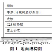 工程项目的地面结构为砼基层、底涂、环氧砂浆和罩面,如图1 所示。
